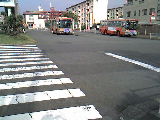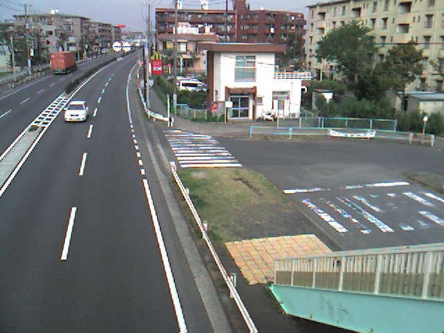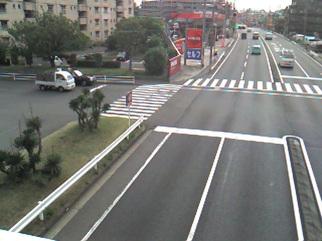 バスストップシケイン入口。右奥の裏ストレートエンドから、画面左の辻堂団地バス停へ右折。約1kmの裏ストレートは4車線幅なので、最大のパッシングポイントになると思われる。